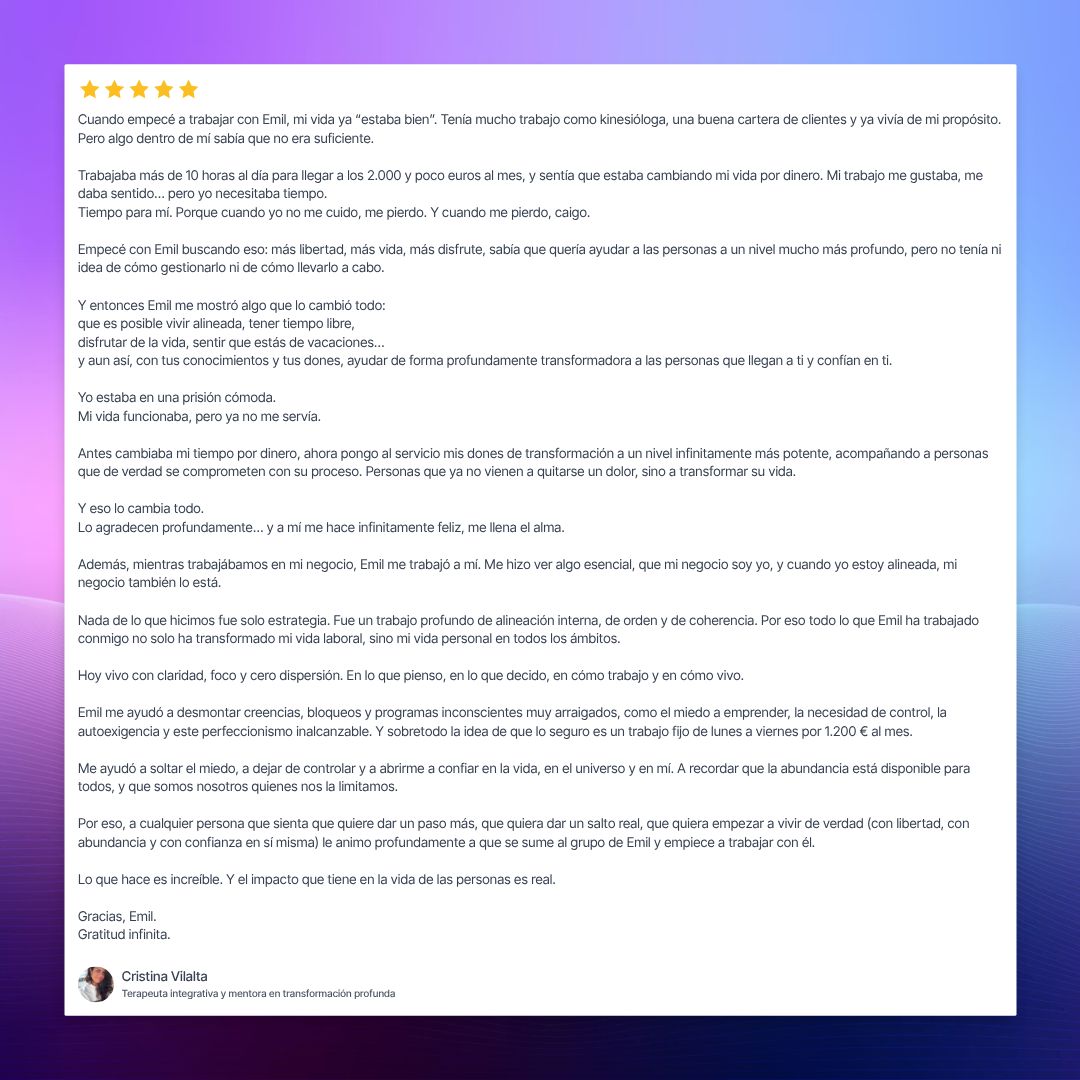 El objetivo de prácticas como la Transformación Subconsciente (la metodología que utilizo en privado con mis clientes)...es ir más allá de la mente analítica y acceder directamente a tu subconsciente, donde viven las identidades, creencias y emociones que te limitan.
