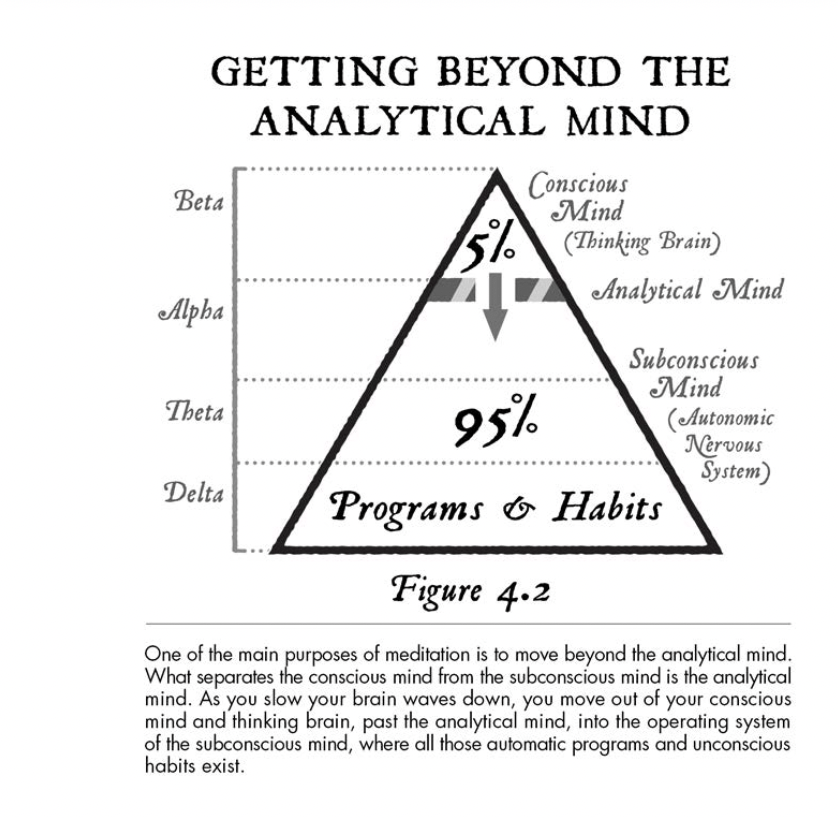 Como revela esta imagen (sacada del libro de Sobrenatural de Joe Dispenza), para reprogramar lo que realmente te controla (el 95%), necesitas bajar las ondas cerebrales.